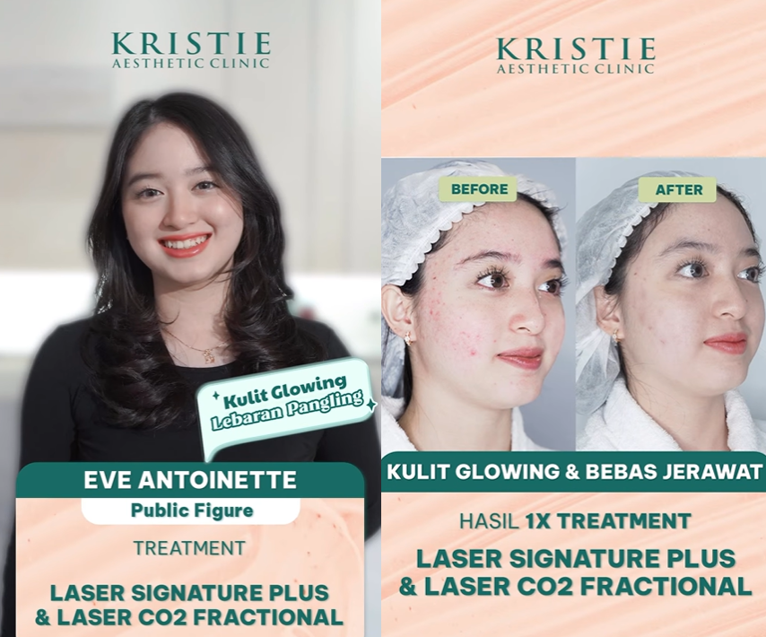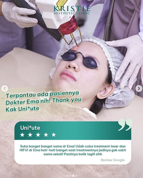“Semenjak facial treatment di Kristie Aesthetic Clinic, kulit wajahku jadi semakin cerah dan glowing.”